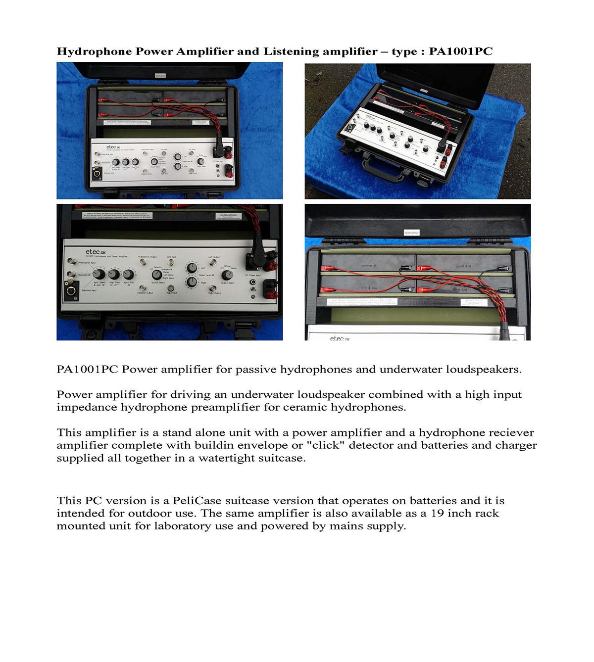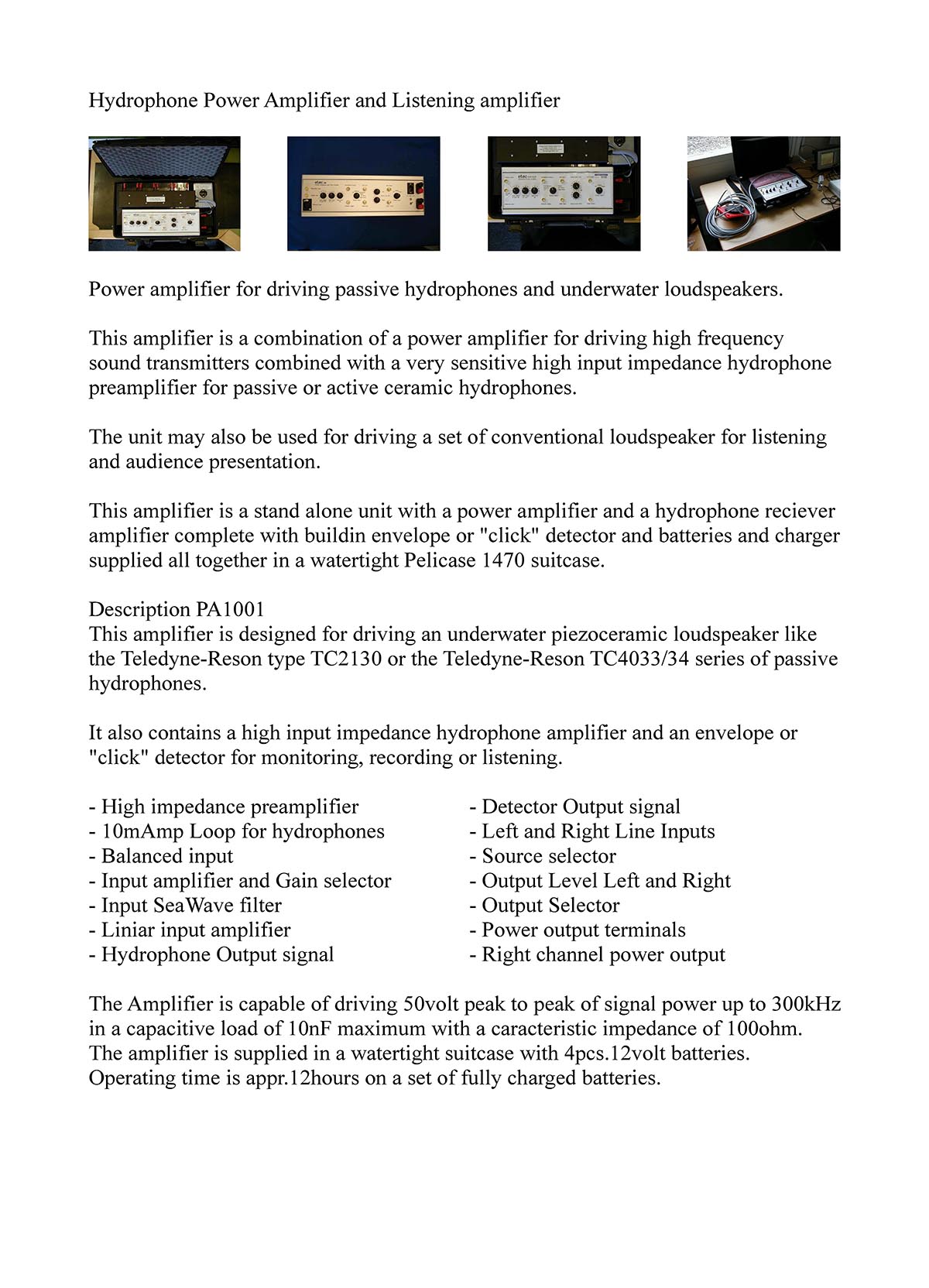 hydrophones by connecting to a pre-amplifier,